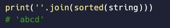 1. `sorted(๋ฌธ์์ด)`์ผ๋ก ๋จผ์ ์ ๋ ฌ์ ํด์ค๋ค.