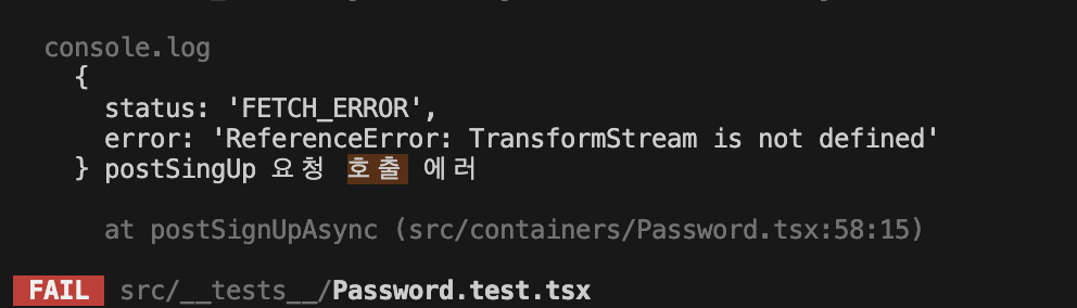 ํ์ง๋ง ์์์ฒ๋ผ ๊ณต์๋ฌธ์๋๋ก ๊ทธ๋๋ก ์ ์ด์ค `jest.polyfills.js` ํ์ผ์์ ์๋ฌ ๋ฐ์