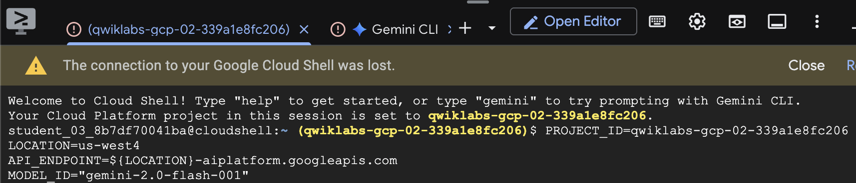 Cloud Shell์์ Gemini API๋ฅผ ํ์ฉํ์ฌ ์ง๋ฌธ์ ๋ํ ๋ต์ ์์ฑํ๋ค.