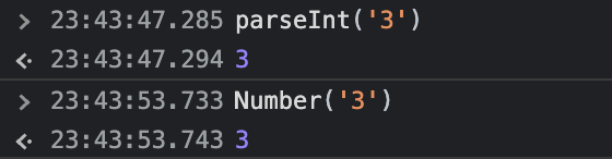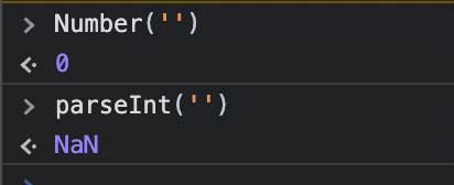 ์ฝํ ๋ฌธ์ ๋ฅผ ํ๋ค๊ฐ ๋ฐ๊ฒฌํ ์๋ฐ์คํฌ๋ฆฝํธ์ ๋ด์ฅํจ์ parseInt() ์ Number()์ ๋ค๋ฅธ์