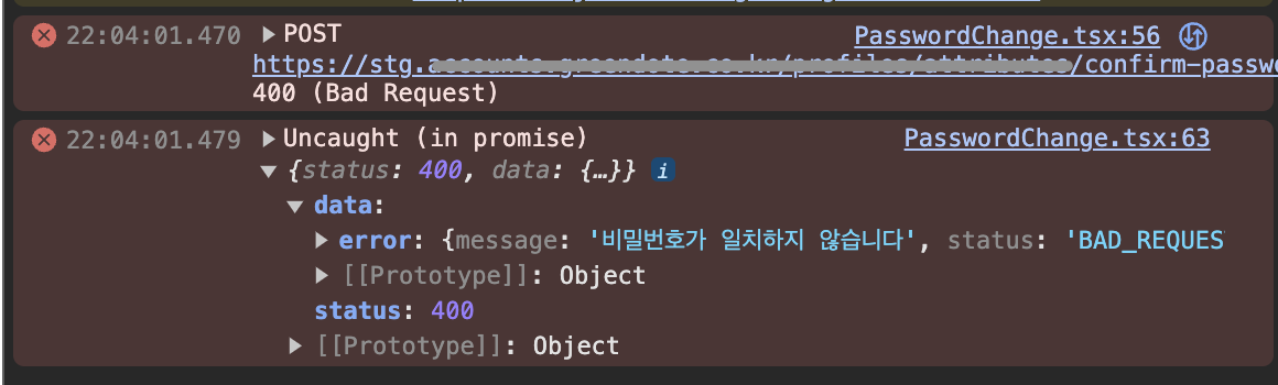 ๋ฐ๋ผ์, 1๋ฒ์งธ api์ ์๋ต์ด ์คํจํด์ผ์ง (์ฌ์ฉ์๊ฐ ์๋ ๋น๋ฐ๋ฒํธ์ ์ผ์นํ๋ ๋น๋ฐ๋ฒํธ๋ฅผ ์ ๋ ฅํ์ด์ผ์ง) 2๋ฒ์งธ api๋ฅผ ํธ์ถํ๋ค.